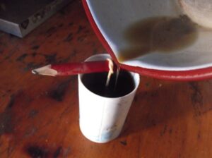 eine Kerze aus Bienenwachs gießen