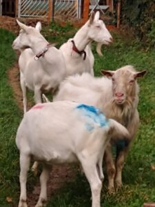 Spannend ist für mich als stillen, aber sehr interessierten Beobachter des Ziegenverhaltens auch die Tatsache, dass die Ziegenmädels von seinem heftigen und meist sehr ungestümen Werben derartig hingerissen zu sein scheinen, dass sie sich alle brunstmäßig innerhalb weniger Tage „synchronisieren“ und dann nahezu zur selben Zeit im Frühjahr mit Kitzen niederkommen.
